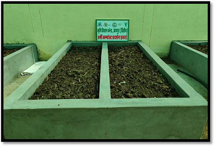 Vermi compost unit was established with financial support of ICAR. This demonstrates the conversion of farm waste into enriched compost. Two different species of worms are reared so that the culture can be made available to farmers, Eisenia foetida.
